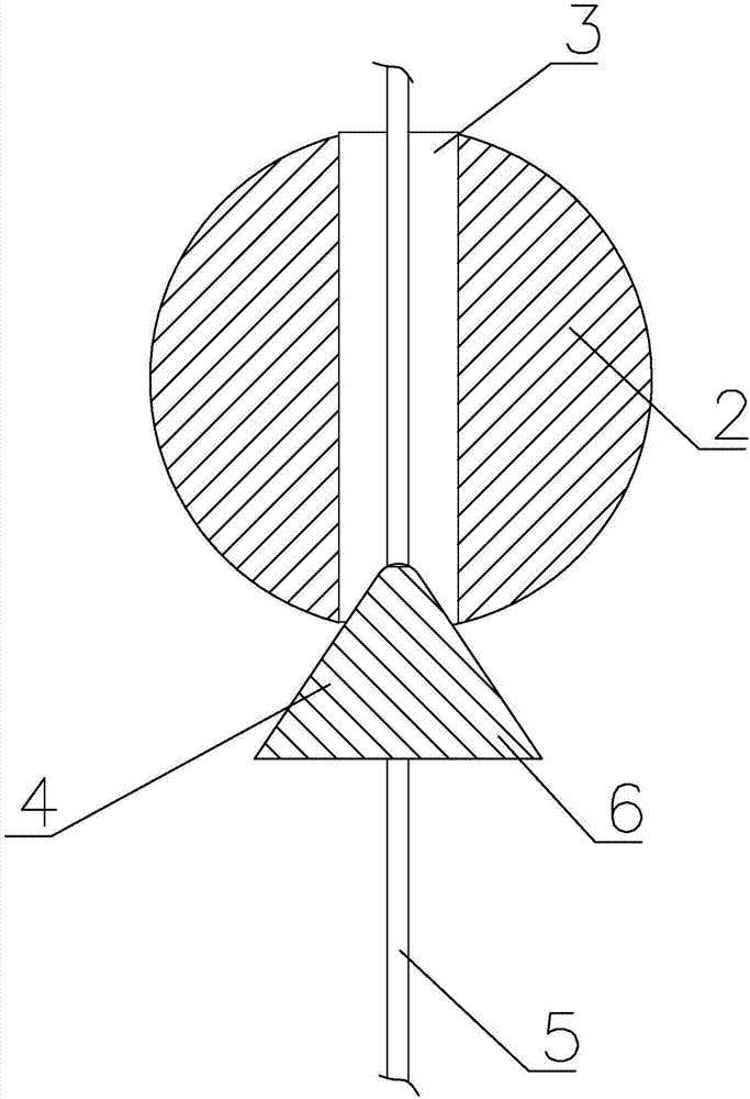 所述擋(dang)體6呈錐形(xíng)結構設置(zhì),當繩索5受(shòu)力作用時(shí),錐形結構(gòu)設置便于(yú)擋體6的卡(ka)于對應通(tōng)孔3内,起到(dao)導向作用(yòng),使用效果(guo)好。