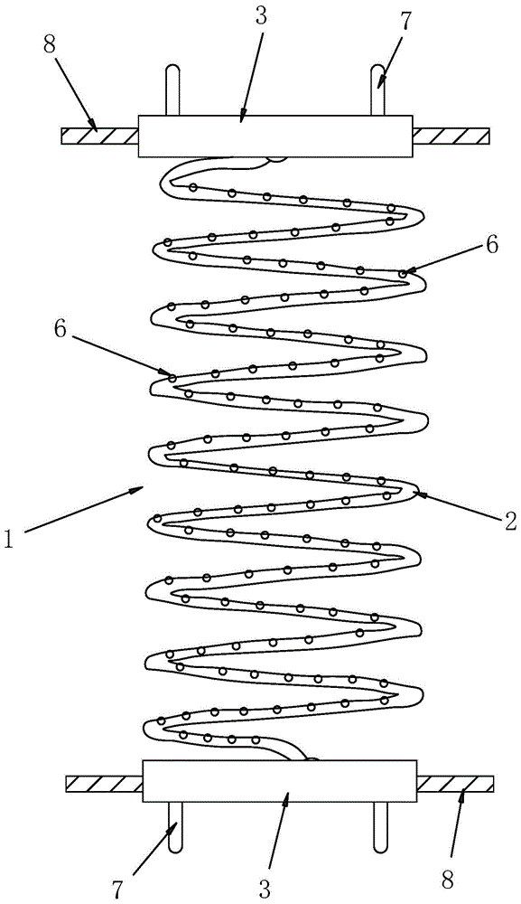 1—彈(dàn)簧本體2—彈簧(huáng)鋼絲3—連接焊(hàn)闆