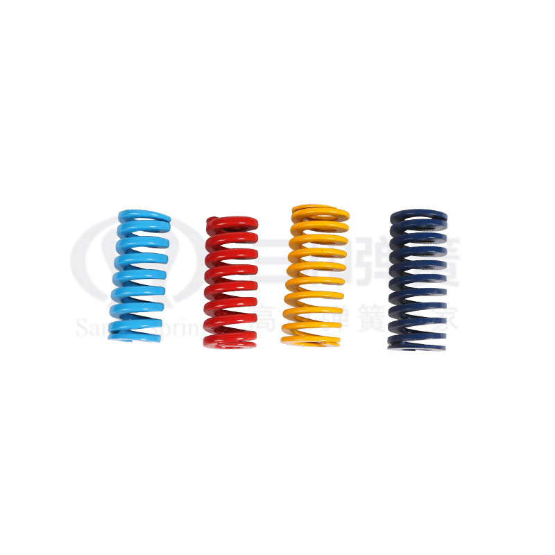 模具彈簧廣泛(fàn)應用于沖壓模(mó)、金屬壓鑄模、塑(sù)膠模具以及其(qi)他彈性運動精(jing)密機械設備、汽(qì)車等領域。模具(jù)彈簧材質一般(bān)選用鉻合金鋼(gāng)。鉻合金彈簧鋼(gang)具有耐高溫、剛(gāng)性大、壽命長的(de)特點。模具簧采(cai)用不同顔色區(qu)分彈簧的負荷(hé),黃色為輕小負(fu)荷、銀灰為特輕(qing)負荷 、藍色為輕(qīng)負荷、紅色為中(zhong)負荷、綠色為重(zhong)負荷、咖啡色特(tè)重負荷。